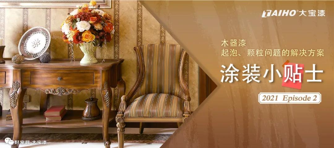 木家具漆在涂裝過程中,難免會因?yàn)橐恍┮蛩貙?dǎo)致涂裝漆病問題的發(fā)生。常見的涂裝問題有,發(fā)白、發(fā)朦,附著力差、流掛、黃變、顆粒、痱子、漲筋(導(dǎo)管凸起)、起皺、開裂、咬底、氣泡、橘皮、針孔等。本次主要分享「起泡」、「顆粒」問題的解決方法。