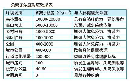 在自然界中當負氧離子數在10000個/cm3以上時,人會感到神清氣爽、舒適愜意。所以負氧離子也被稱為“空氣維生素”,甚至有人稱它為“長壽素”。