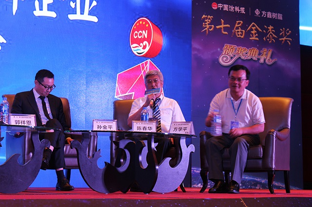 5月29日,由中國涂料報主辦的第七屆金漆獎頒獎盛典暨第八屆中國涂料企業領袖峰會在順德喜來登酒店隆重召開。來自全國各地涂料企業代表、經銷商及媒體近200人出席了本次盛會,身為涂料行業中的領軍企業,大寶化工總經理陳春華及企劃部副理楊忠榮應邀參加了此次盛會。同時,陳春華總經理作為特邀嘉賓,在現場也和國內其他涂料界大老們在領袖峰會論壇中對于國內涂料市場的未來發展進行了分析及探討。