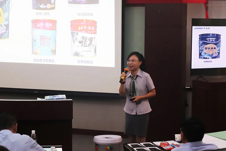 葉副總表示,此次推廣會(huì)議,旨在向大家宣導(dǎo)大寶近期在產(chǎn)品和服務(wù)方面所做的努力,希望這次新產(chǎn)品的推廣,能夠賦能經(jīng)銷商應(yīng)對裝修漆市場面臨的新挑戰(zhàn),促使大寶品牌不斷創(chuàng)新、不斷精進(jìn),引導(dǎo)裝修漆市場新趨勢、心服務(wù)。