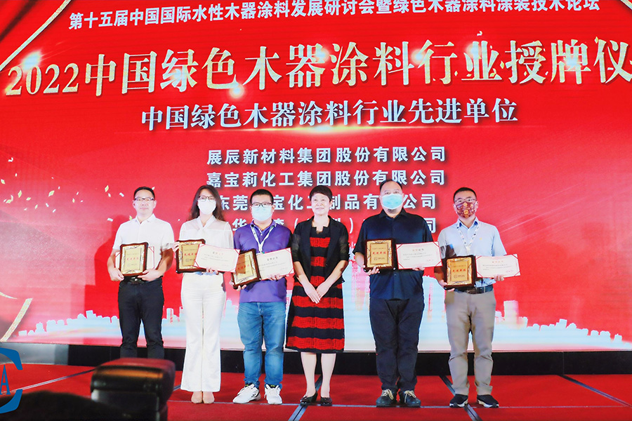 會(huì)議中舉行“2022年中國(guó)優(yōu)秀木器涂料涂裝綠色產(chǎn)業(yè)鏈協(xié)同發(fā)展單位授牌儀式”,并對(duì)中國(guó)綠色木器涂料發(fā)展做出突出貢獻(xiàn)的單位及個(gè)人進(jìn)行表彰,東莞大寶化工制品有限公司獲評(píng)為“中國(guó)綠色木器涂料行業(yè)先進(jìn)單位”,東莞大寶化工廠務(wù)/技術(shù)部總經(jīng)理陳春華獲評(píng)為“中國(guó)綠色木器涂料行業(yè)創(chuàng)新推動(dòng)者”。