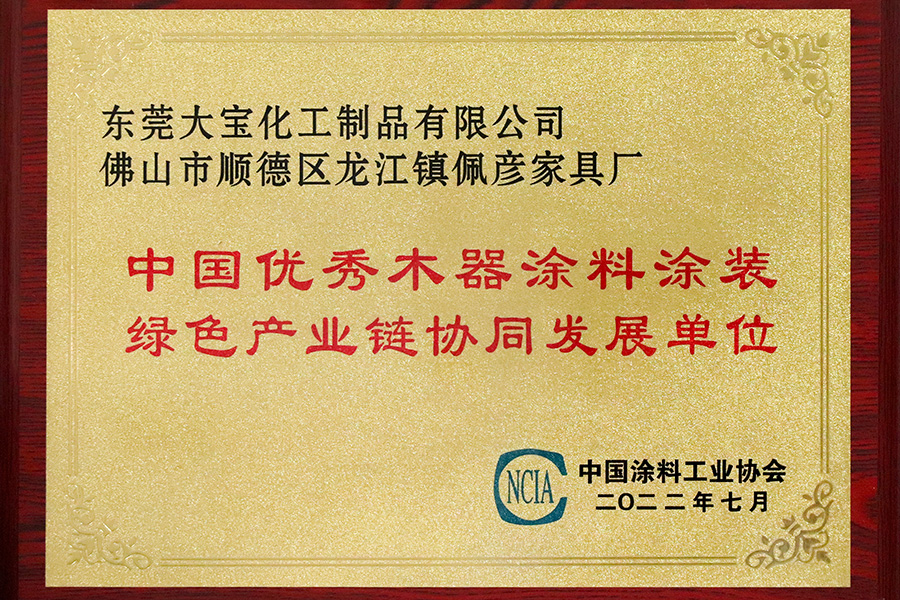 東莞大寶獲中國(guó)優(yōu)秀木器涂料涂裝綠色產(chǎn)業(yè)鏈協(xié)同發(fā)展單位