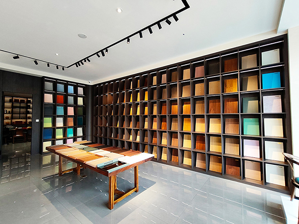 作為本次經(jīng)銷商大會的壓軸行程,與會嘉賓在午宴后前往山東大寶家具漆服務中心深度考察。步入展廳,極具現(xiàn)代感的色板陣列即刻映入眼簾—木器漆呈現(xiàn)天然肌理之美,金屬涂層閃耀科技光澤,塑膠與玻瓶的表面處理更突破傳統(tǒng)工藝邊界。