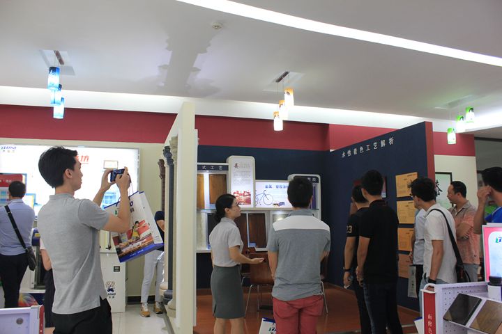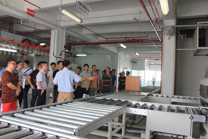 在大寶化工工作人員的陪同下,青家協(xié)一行先后參觀了中央實(shí)驗(yàn)室、4C元素店、智能涂裝測(cè)試線、色板中心、后花園和安管中心。在色板中心參觀時(shí),家具企業(yè)家們紛紛慨嘆大寶漆精湛的施工工藝和優(yōu)越的品質(zhì),表示對(duì)大寶漆早有耳聞,今日一見,更是加強(qiáng)了與大寶漆合作的意念。
