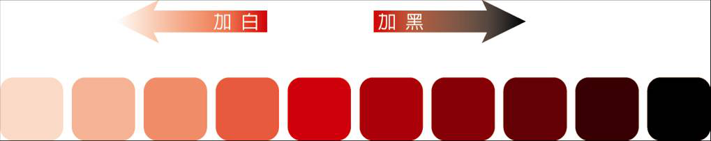 3. 影像處理中改變色調的方式??梢栽谕簧嗌剩尤氚咨珌硖岣呙鞫?;加入黑色來降低明度的方式,產生一系列的色彩變化,如淺紅、淡 紅、亮紅、深紅、暗紅即是紅色不同的明度變化。